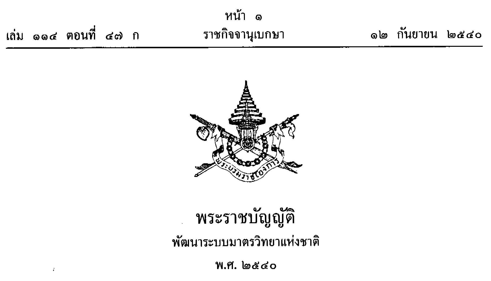 ๑. พ.ร.บ.พัฒนาระบบมาตรวิทยาแห่งชาติ พ.ศ. ๒๕๔๐ และที่แก้ไขเพิ่มเติม
